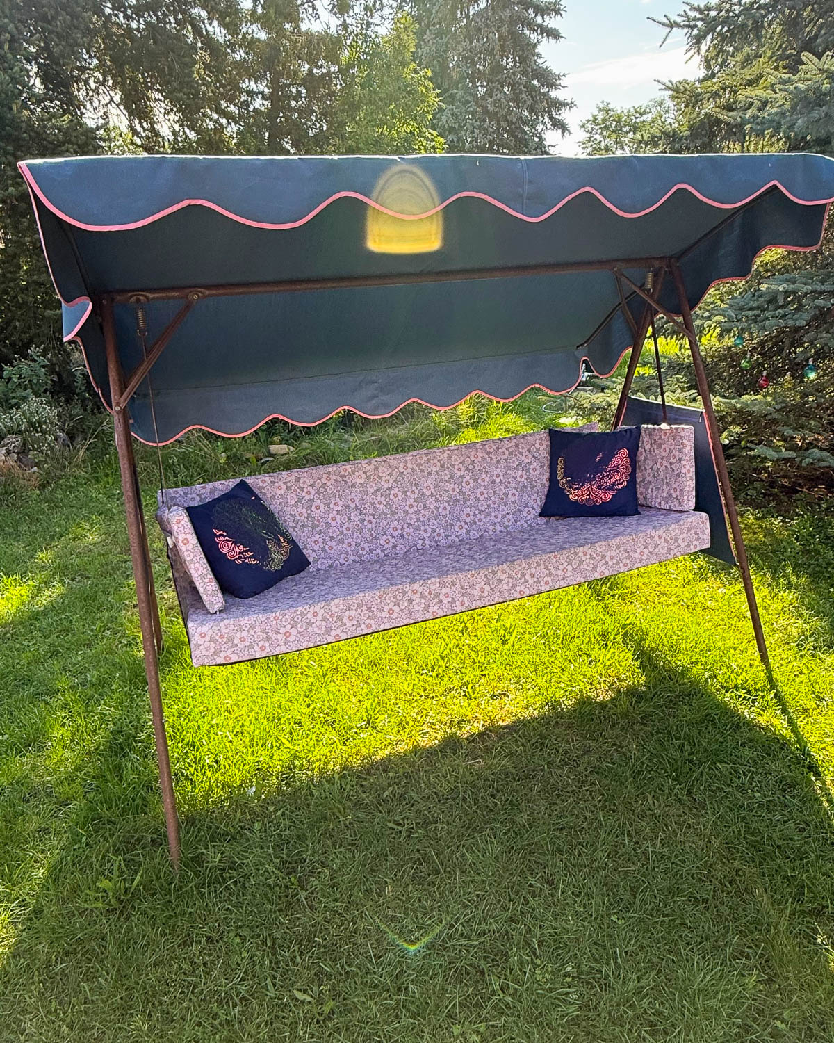 Das Ergebnis ist mega schön und die beiden Kissen sehen einfach großartig auf meiner geretteten Hollywoodschaukel aus 🤩
