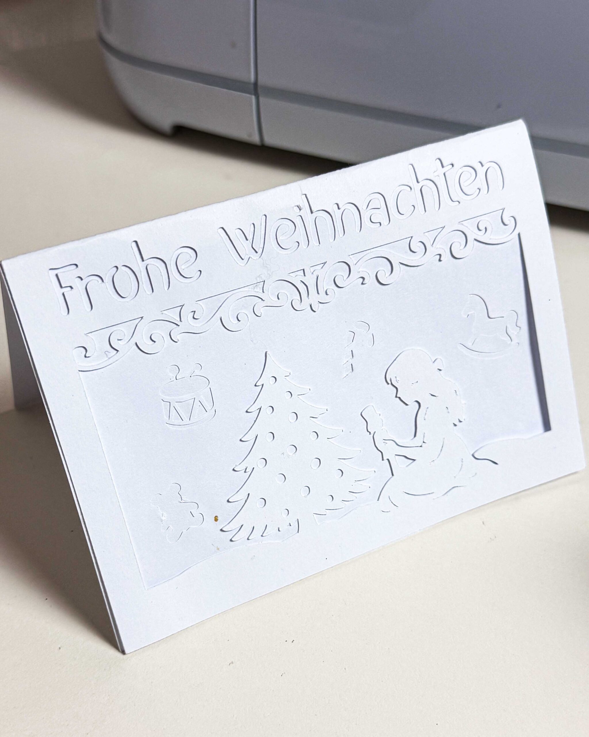 Diese Weihnachtskarte kannst du mit deinem Plotter schneiden z.B. ganz einfach aus weißem Papier oder auch aus unterschiedlichen bunten Papieren.